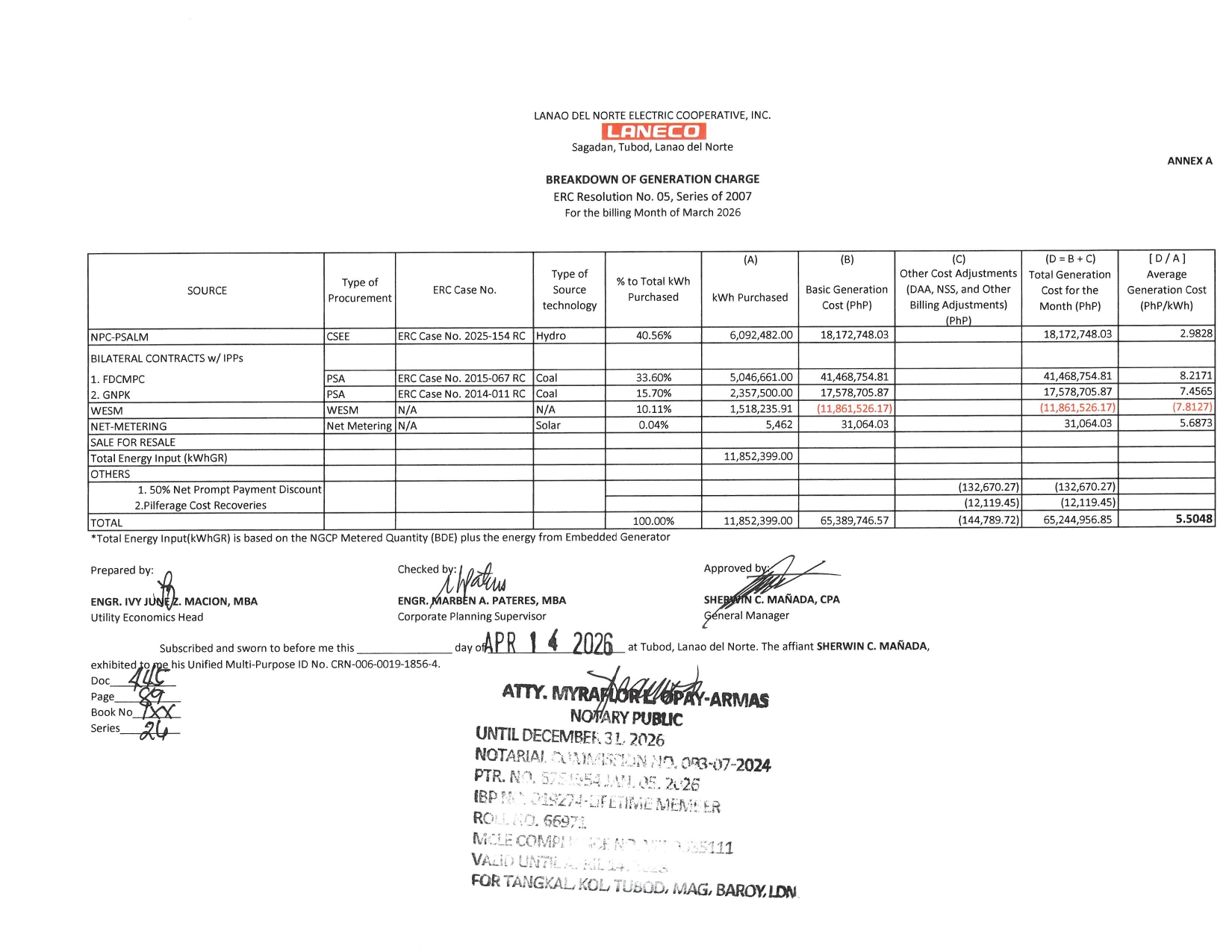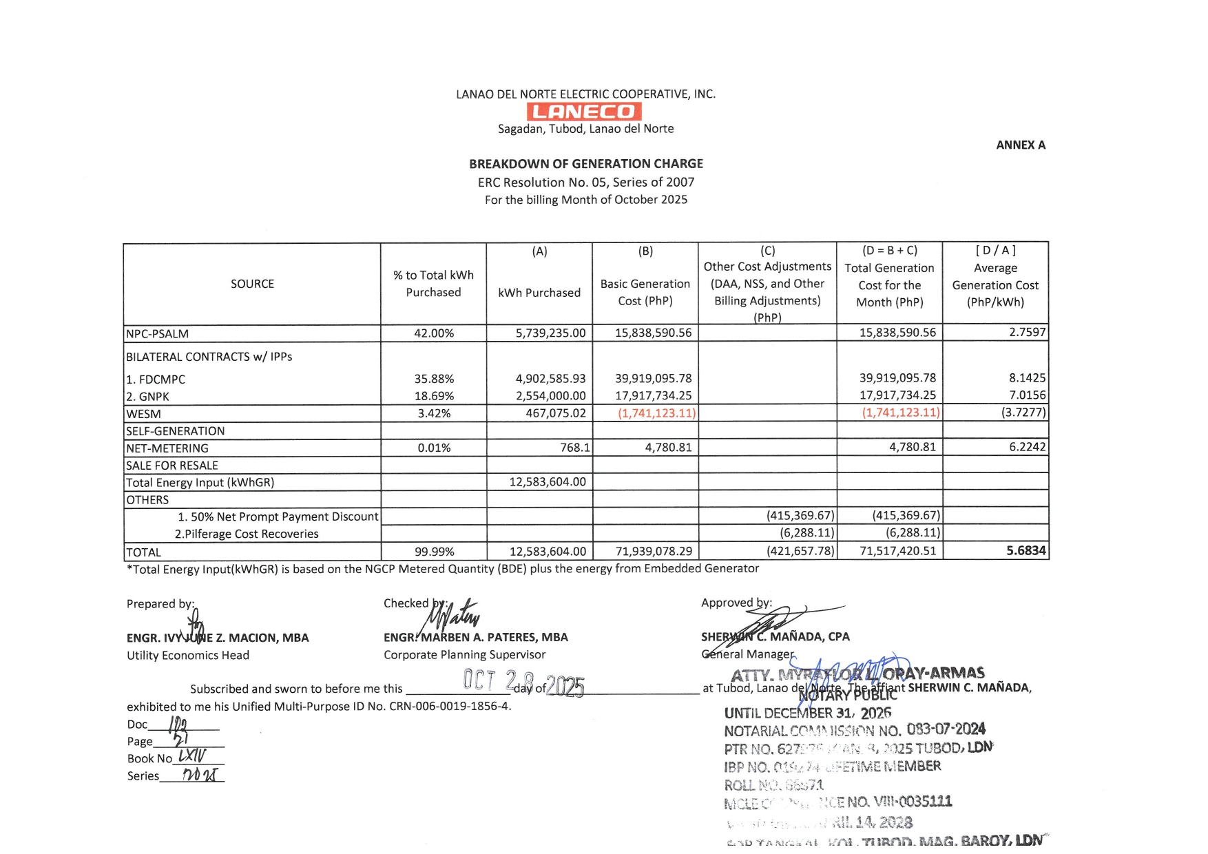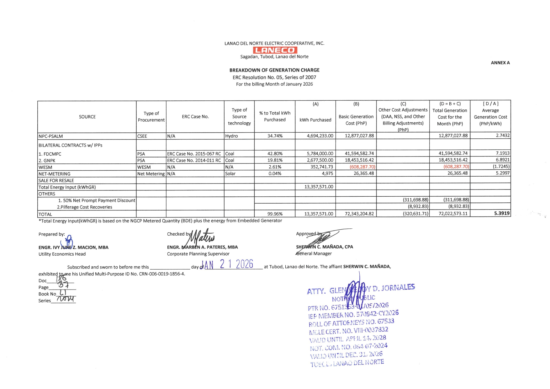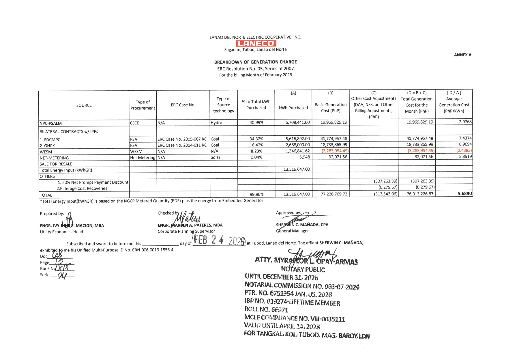 BREAKDWON OF GENERATION CHARGE 2026 January February March April May June July August September October November December BREAKDOWN OF GENERATION CHARGE 2025 January February March April May June July August September October November December BREAKDOWN OF GENERATION CHARGE 2024 JanuaryFebruaryMarchAprilMayJuneJulyAugustSeptemberOctoberNovemberDecember BREAKDOWN OF GENERATION CHARGE 2023 DecemberNovemberOctoberSeptemberAugustJulyJuneMayAprilMarchFebruary January BREAKDOWN OF GENERATION CHARGE 2022 December November October September August July June May April March February January