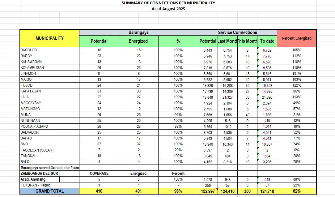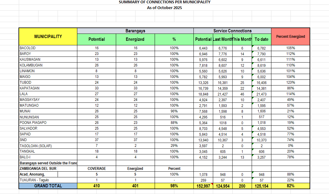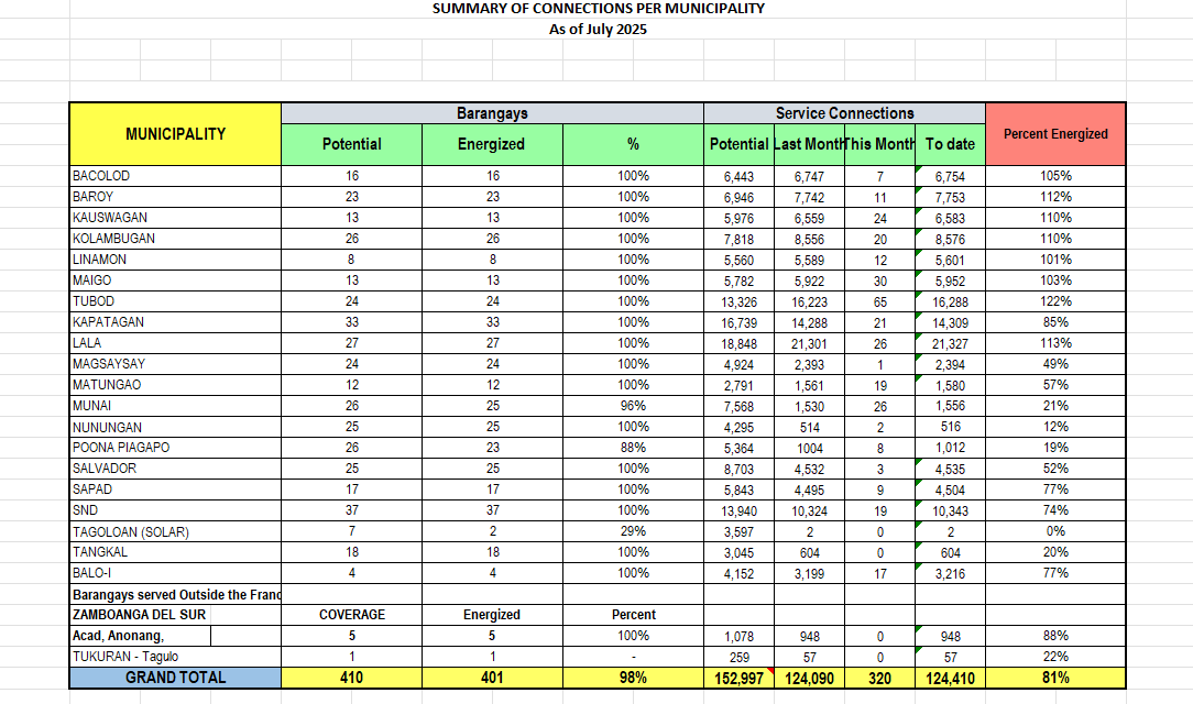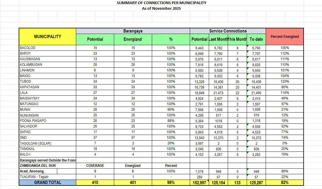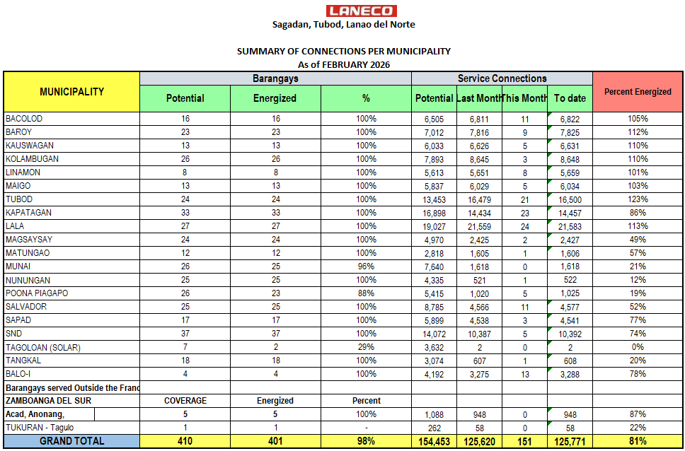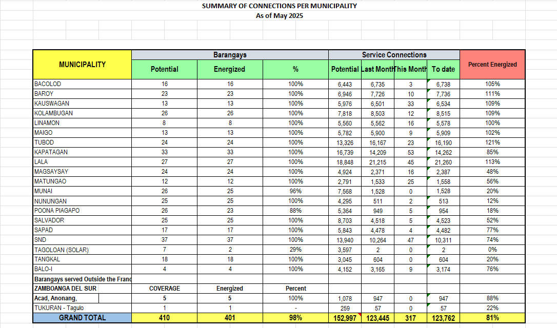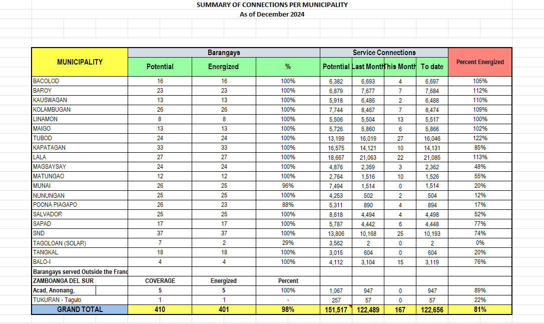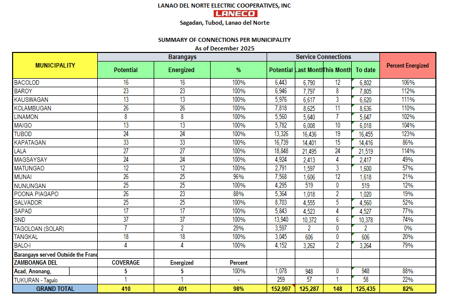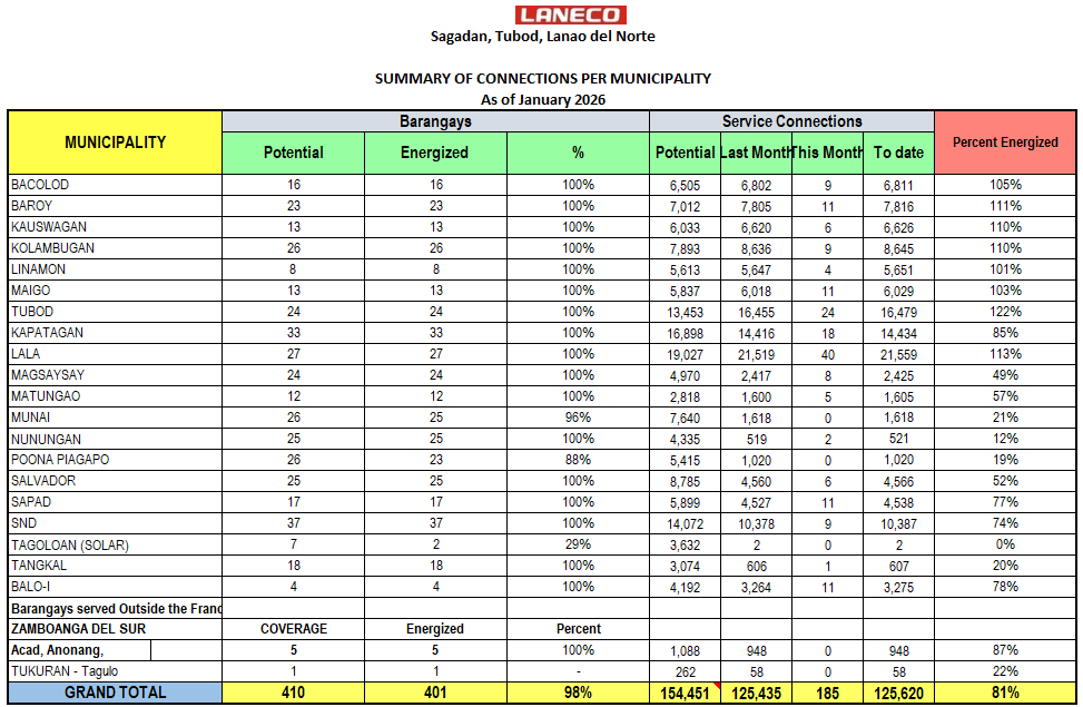Summary of Connections per Municipality Summary of Connections of 2026 JANUARY FEBRUARY MARCH APRIL MAY JUNE JULY AUGUST SEPTEMBER OCTOBER NOVEMBER DECEMBER Summary of Connections of 2025 JANUARY FEBRUARY MARCH APRIL MAY JUNE JULY AUGUST SEPTEMBER OCTOBER NOVEMBER DECEMBER Summary of Connections of 2024 JANUARY FEBRUARY MARCH APRIL MAY JUNE JULY AUGUST SEPTEMBER OCTOBER NOVEMBER DECEMBER Summary of Connections of 2023 JANUARYFEBRUARYMARCHAPRILMAYJUNEJULYAUGUSTSEPTEMBEROCTOBERNOVEMBERDECEMBER Summary of Connections of 2022 JANUARYFEBRUARYMARCHAPRILMAYJUNEJULYAUGUSTSEPTEMBEROCTOBERNOVEMBERDECEMBER Summary of Connections of 2021 JANUARYFEBRUARYMARCHAPRILMAYJUNEJULYAUGUSTSEPTEMBEROCTOBERNOVEMBERDECEMBER Summary of Connections of 2020 JANUARYFEBRUARYMARCHAPRILMAYJUNEJULYAUGUSTSEPTEMBEROCTOBERNOVEMBERDECEMBER Summary of Connections of 2019 JANUARYFEBRUARYMARCHAPRILMAYJUNEJULYAUGUSTSEPTEMBEROCTOBERNOVEMBERDECEMBER